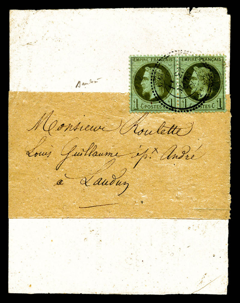 520 imageN°25, 1c Lauré en paire obl càd type 24 de LAUJUZAN sur bande imprimé complet. TTB Qualité: Oblitéré (Image)