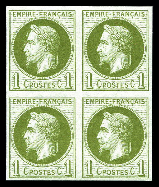 523 imageN°25c, Rothschild, 1c olive impression fine non dentelé en bloc de quatre , fraîcheur postale. SUP (signé Brun/certificat) Qualité: ** (Image) (image2) (All Images)