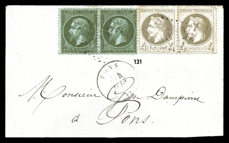 536 image1c dentelé en paire + paire du 4c Lauré obl GC et càd sur petite lettre de PONS. TTB. R. (certificat) Qualité: Oblitéré (Image)