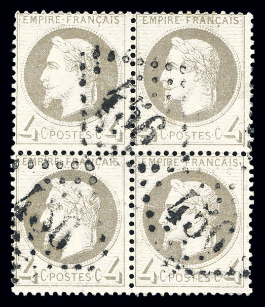 542 imageN°27B, 4c gris type II, bloc de quatre obl GC. TTB (certificat) Qualité: Oblitéré Cote: 850 euros (Image)