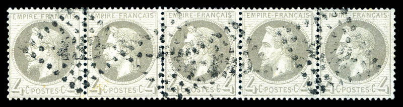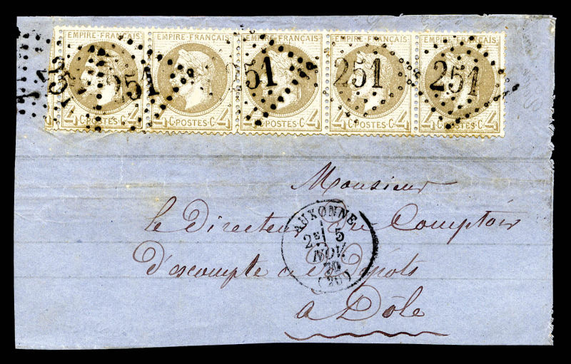 545 imageN°27B, 4c gris, bande de 5 obl GC '251' sur devant de lettre. TB Qualité: Oblitéré Cote: 490 euros (Image)