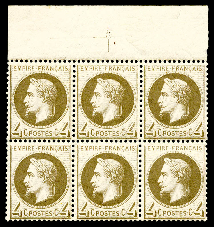 546 imageN°27Ba, 4c gris-foncé en bloc de 6 haut de feuille avec croix de repère, très bon centrage. SUP (certificat) Qualité: ** (Image) (image2) (All Images)