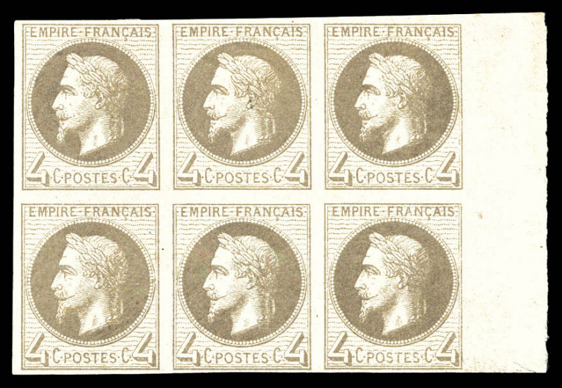 549 imageN°27, 4c Lauré: Non dentelé du dentelé en bloc de 6 exemplaires bord de feuille latéral (3 ex*). SUP. R. (certificat) Qualité: ** (Image)