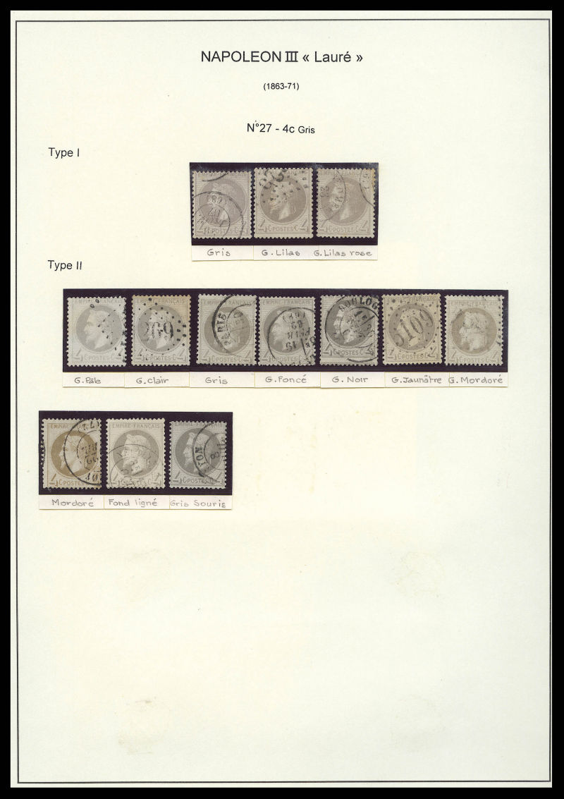 550 imageN°27, 4c Lauré type I & II lot de 13 exemplaires avec nuances différentes dont lilas, mordoré et fond ligné.TTB Qualité: Oblitéré (Image)
