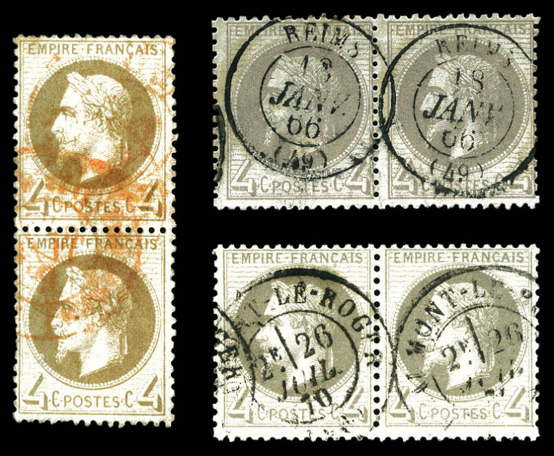551 imageN°27, 4c Lauré: 4c gris, 4c gris-lilas et 4c obl càd rouge des imprimés en 3 paires. TTB Qualité: Oblitéré (Image)