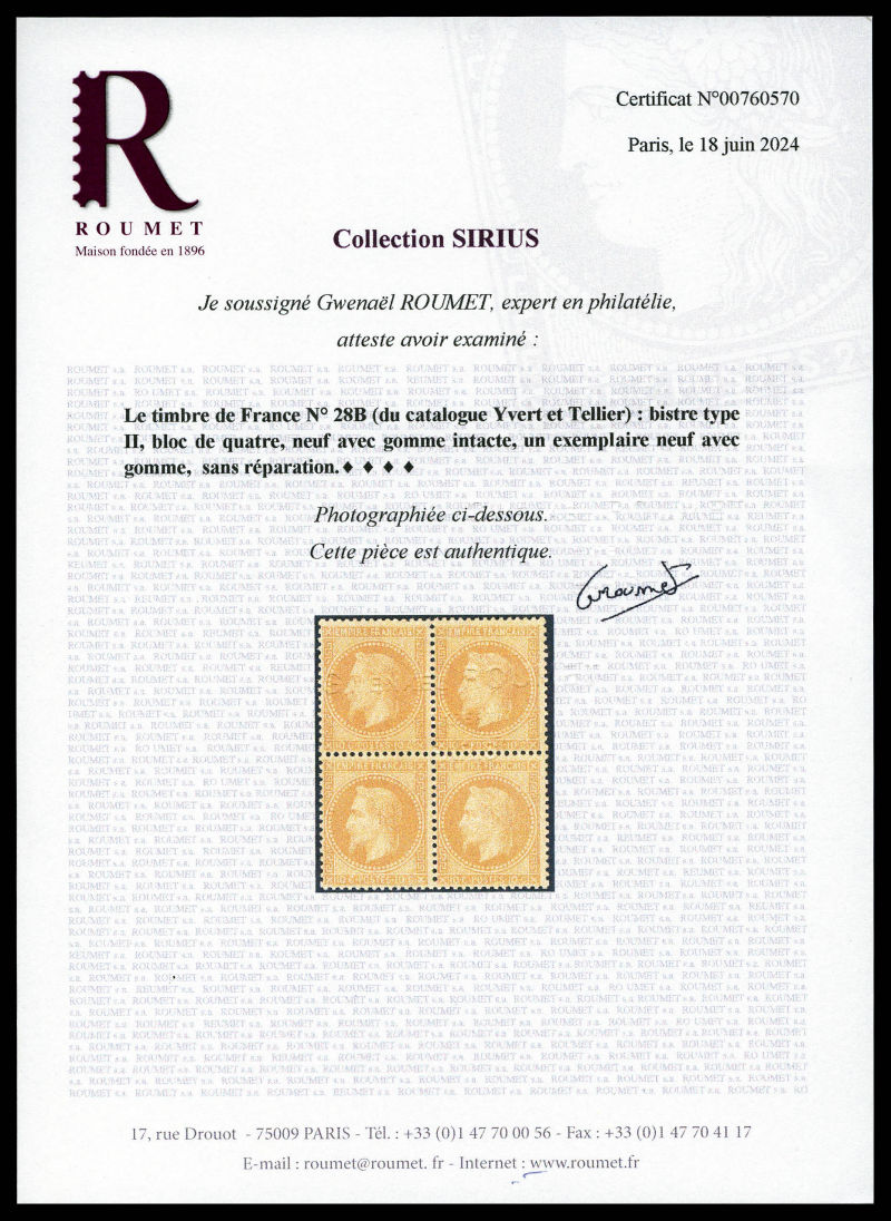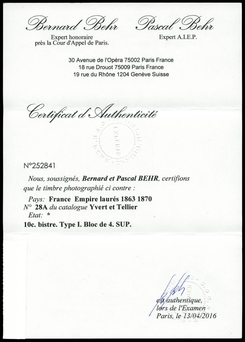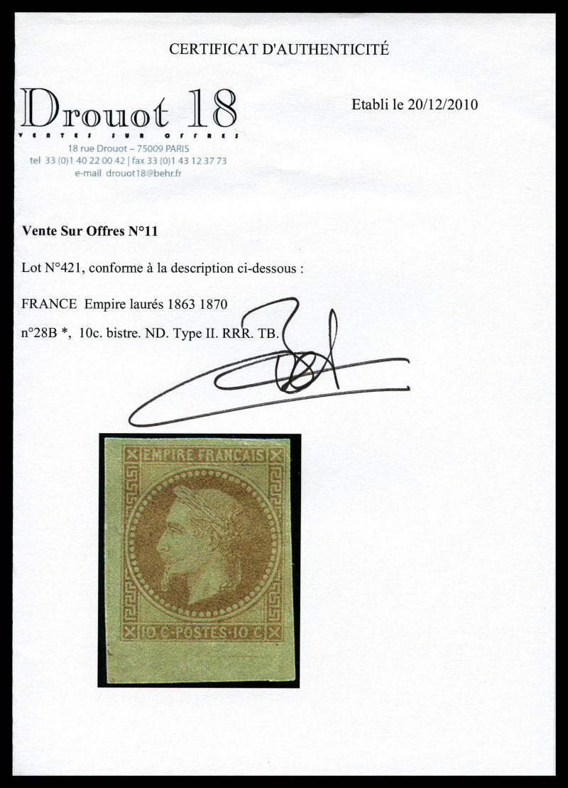 557 imageN°28B, 10c bistre type II, TTB (certificat) Qualité: ** (Image) (image2) (All Images)