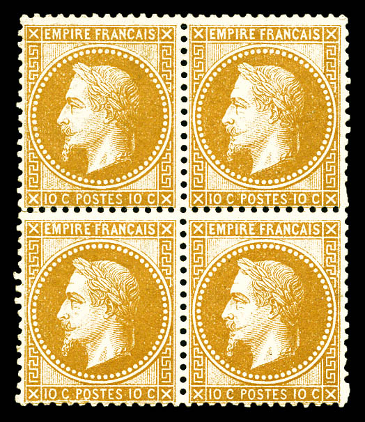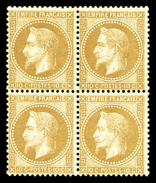 552 imageN°28A, 10c bistre Type I en bloc de quatre (2ex**). TTB (signé Brun/certificats) Qualité: * Cote: 3700+ euros (Image) (image2) (All Images)