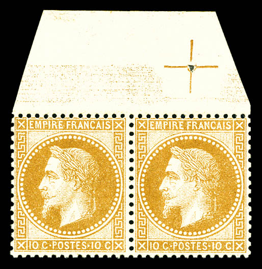 555 imageN°28B, 10c bistre type II en paire haut de feuille avec croix de repère, très bon centrage. SUP (signé Calves/certificat) Qualité: ** (Image)