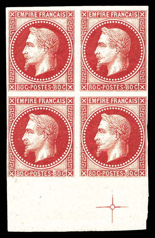605 imageN°32b, Rothschild, 80c rose non dentelé en bloc de quatre (2 ex*) bord de feuille inférieur avec croix de repère . SUP (certificat) Qualité: ** (Image)