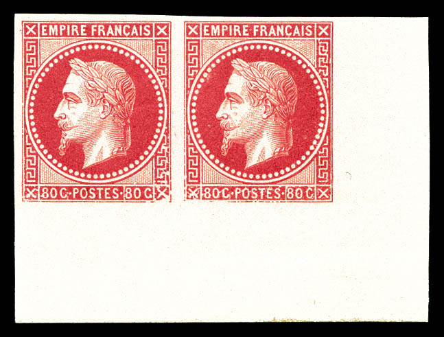606 imageN°32b, Rothschild, 80c rose non dentelé en paire coin de feuille, fraîcheur postale, SUP (certificat) Qualité: ** (Image)