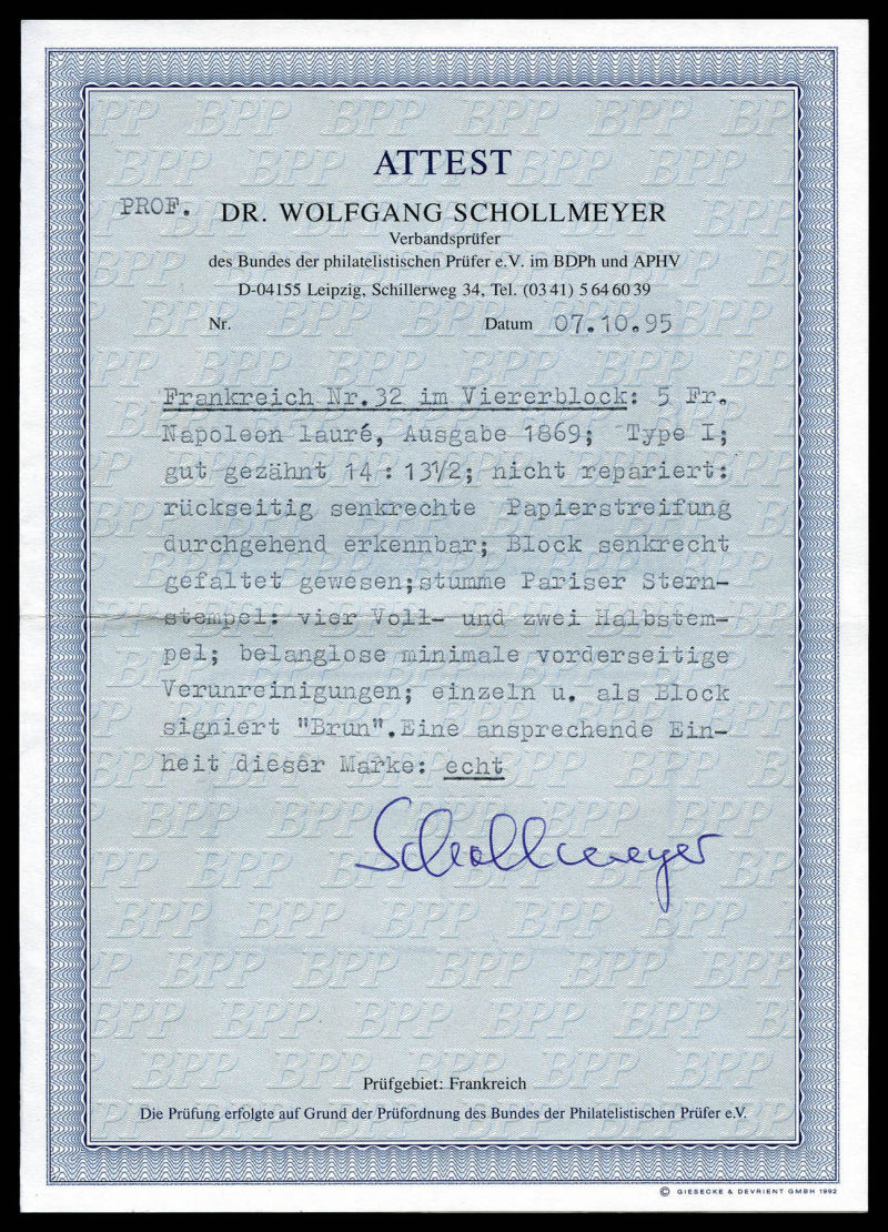 618 imageN°33, Empire, 5F violet-gris oblitération étoile '4' posée, SUP. (signé Scheller/Brun/certificat) Qualité: Oblitéré (Image) (image2) (All Images)