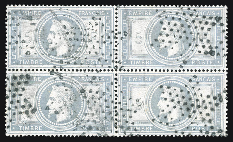 614 imageN°33, 5 fr violet-gris en bloc de quatre obl étoile. SUPERBE. R.R. (signé Brun/certificats) Qualité: Oblitéré Cote: 12000 euros (Image) (image2) (image3) (image4) (All Images)
