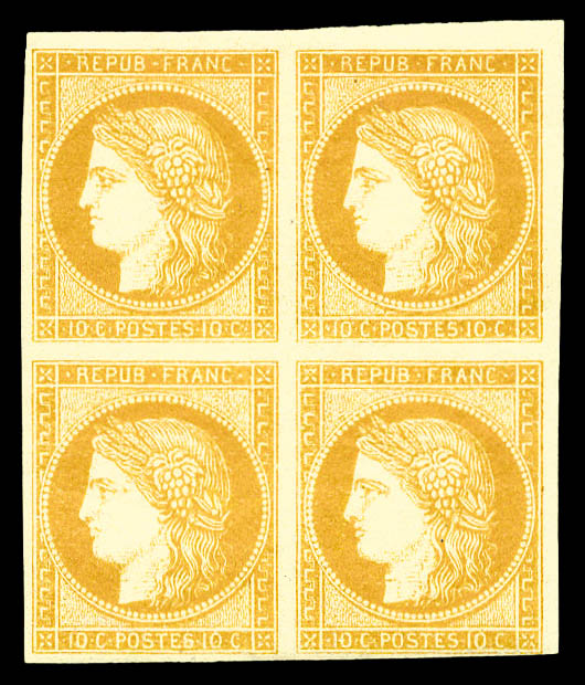 681 imageN°36c, Granet: 10c bistre-jaune en bloc de quatre. TTB (certificat) Qualité: * Cote: 1800+ euros (Image)