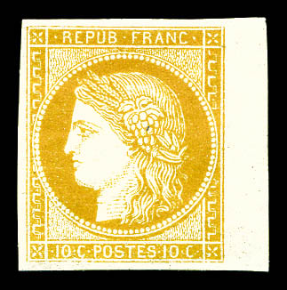 682 imageN°36c, Granet, 10c bistre-jaune non dentelé, bord de feuille, TB (signé/certificat) Qualité: * Cote: 450 euros (Image)