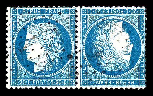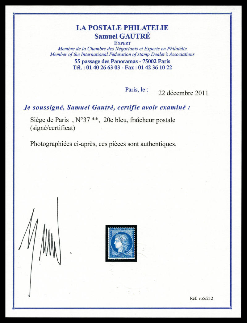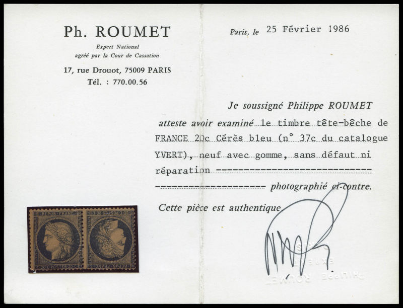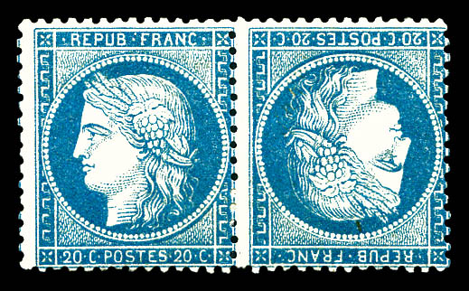 688 imageN°37c, 20c bleu en PAIRE TÊTE BÊCHE, TB. (signé/certificats) Qualité: * Cote: 7000 euros (Image) (image2) (All Images)