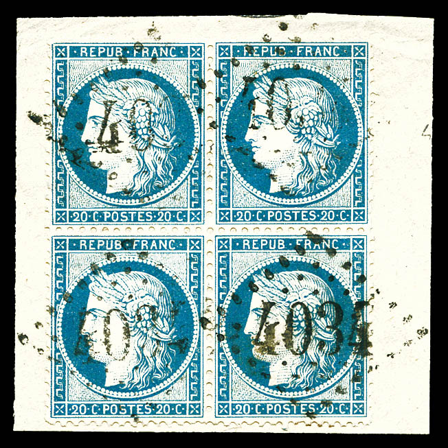 686 imageN°37, 20c bleu en bloc de 4 obl GC 4034, très bon centrage. TTB Qualité: Oblitéré (Image)
