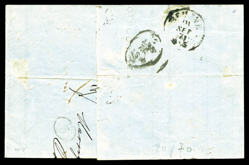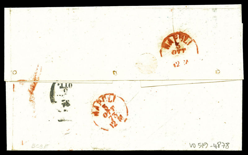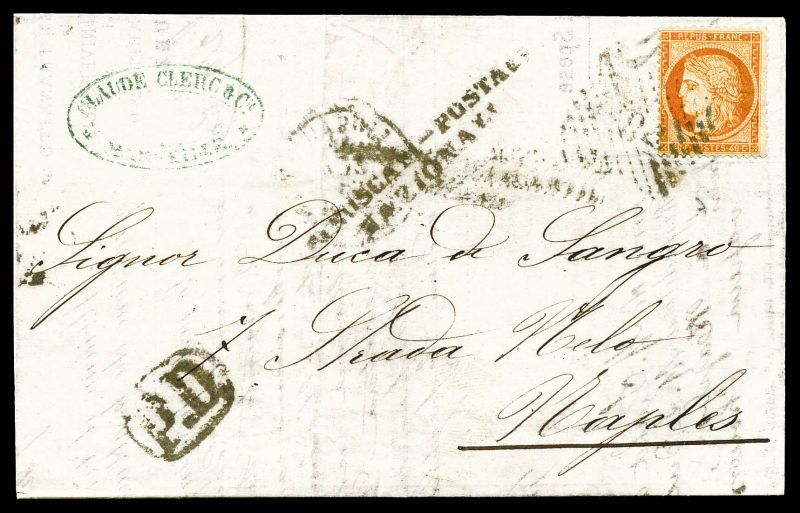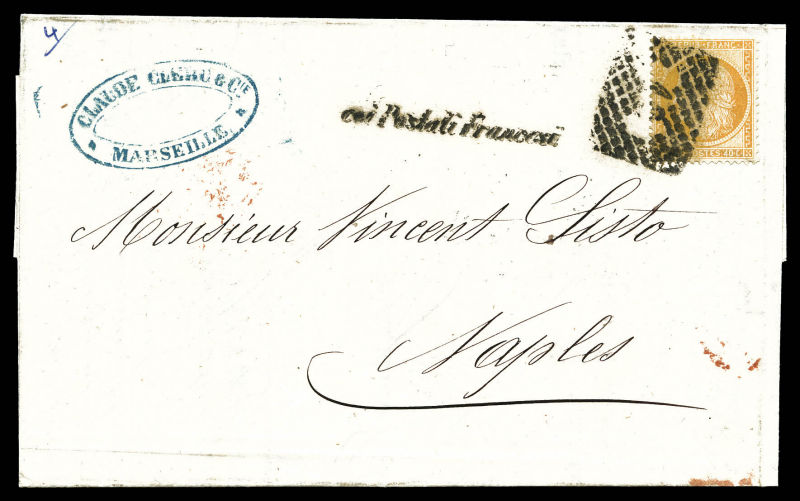 698 imageN°38, 40c Siège dentelé obl rectangle de Points 19 de Naples + griffe 'COI POSTALI FRANCESI' sur lettre de Marseille pour Naples. SUP. (certificat) Qualité: Oblitéré (Image) (image2) (All Images)