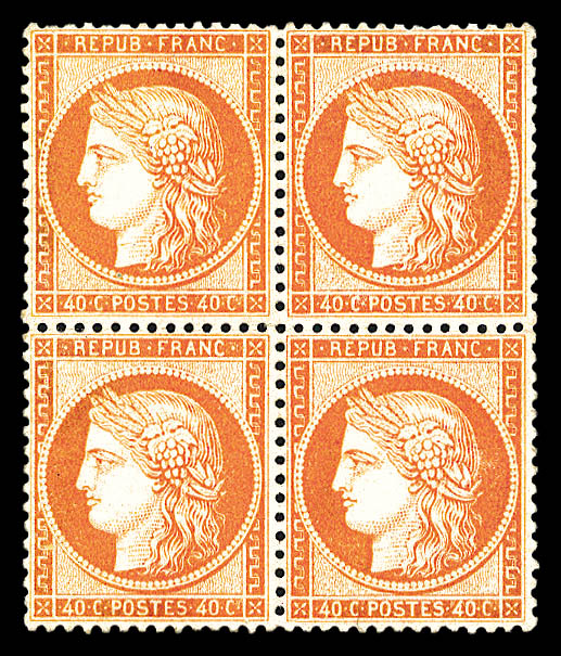693 imageN°38, 40c orange en bloc de quatre, bon centrage, fraîcheur postale (signé Calves/certificat) Qualité: ** (Image)