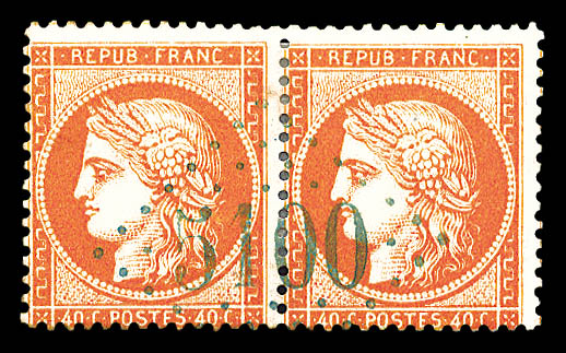 ALLEMAGNE (1)   |  ANDORRE (8)   |  BELGIQUE (2)   |  COLONIES (1223)   |  COLONIES GENERALES (20)   |  FRANCE (2937)   |  GRANDE BRETAGNE (1)   |  GRANDES SERIES COLONIALES (7)   |  LOTS ET COLLECTIONS Europe (1)   |  LOTS ET COLLECTIONS Thématiques (1)   |  MONACO (57)   |  SUISSE (1)   |