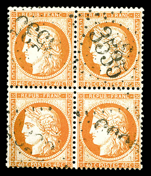 696 imageN°38, 40c orange en bloc de 4 obl GC 3535, TB Qualité: Oblitéré Cote: 150 euros (Image)
