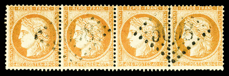 702 imageN°38f, 40c orange clair: paire de 4 retouchés tenant à 2 normaux en bande de quatre obl GC '5098'. TB (signé Calves/certificat) Qualité: Oblitéré Cote: 2000 euros (Image)
