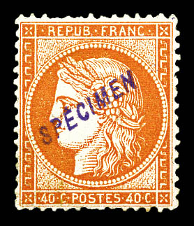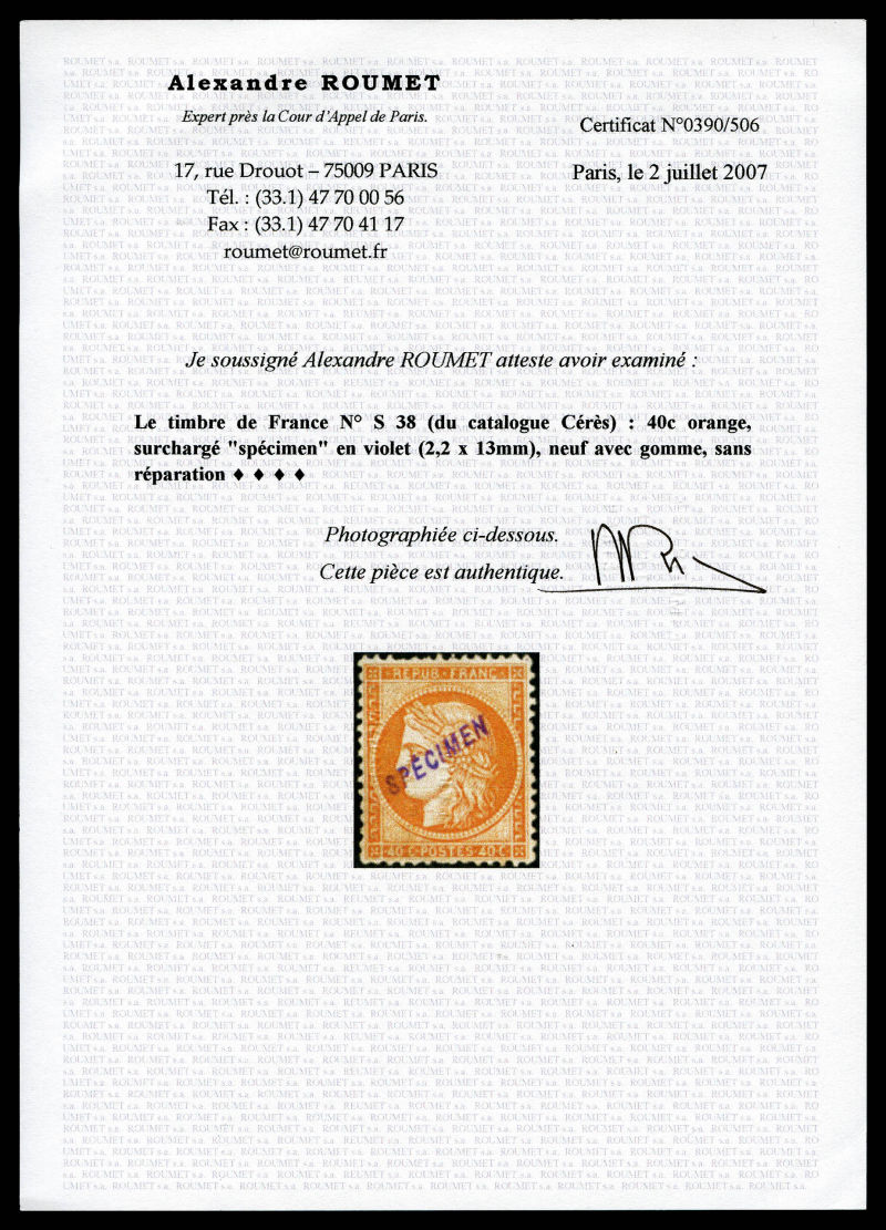703 imageN°38, 40c orange surchargé SPECIMEN en violet. SUPERBE. R. (signé/certificat) Qualité: * (Image) (image2) (All Images)