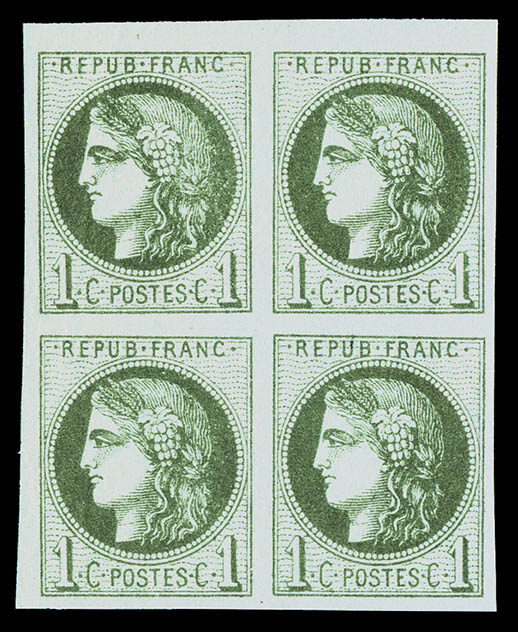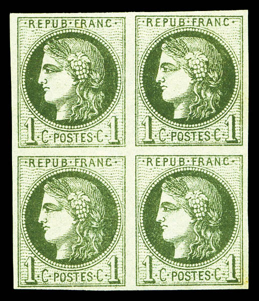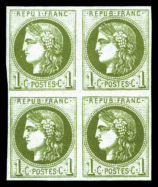 709 imageN°39A, 1c olive Report I en bloc de quatre, fraîcheur postale, SUPERBE (certificat) Qualité: ** (Image)