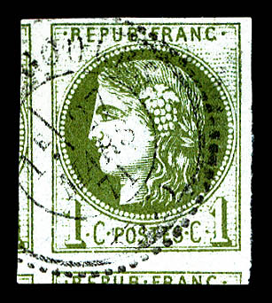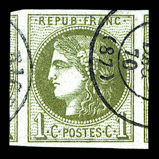 712 imageN°39A, 1c olive Report 1, grandes marges avec voisin. SUP (signé Scheller/certificat) Qualité: Oblitéré (Image) (image2) (All Images)