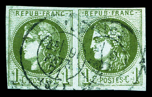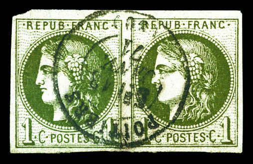 711 imageN°39A, 1c olive Report 1 en paire. TB (certificat) Qualité: Oblitéré Cote: 600 euros (Image)