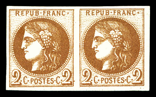 743 imageN°40A, 2c Chocolat clair Report 1 en paire horizontale, belles marges. SUP (certificat) Qualité: * Cote: 3500 euros (Image)