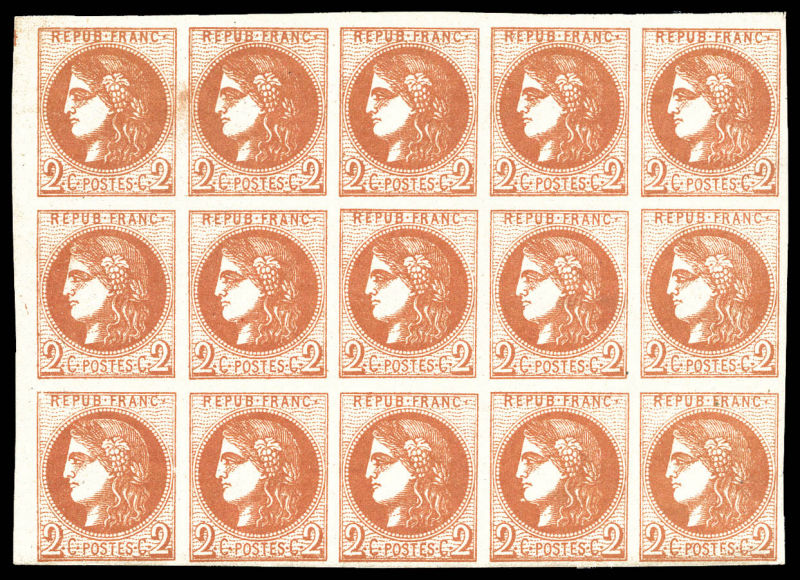 760 imageN°40B, 2c brun-rouge Report 2 en bloc Report de 15 exemplaires (4ex*), grandes marges, FRAÎCHEUR POSTALE, SUP (certificat) Qualité: ** (Image)