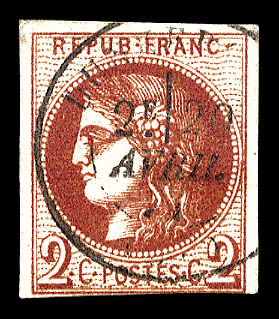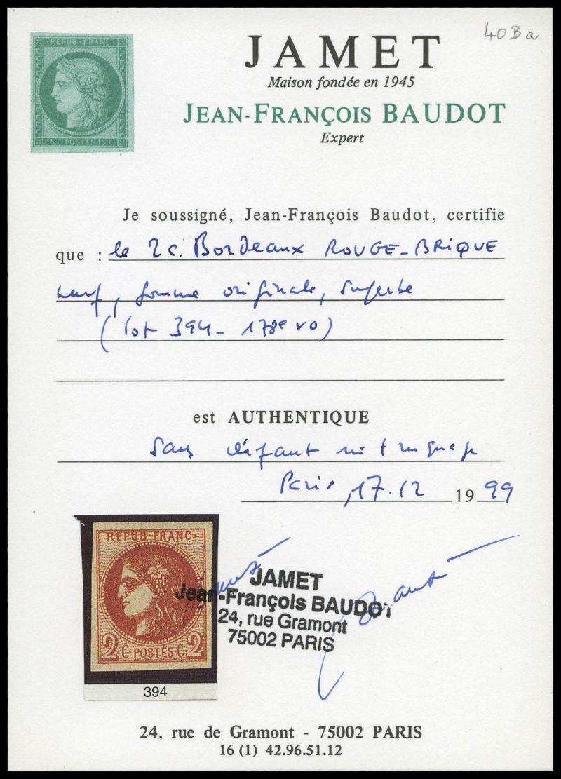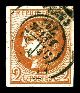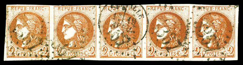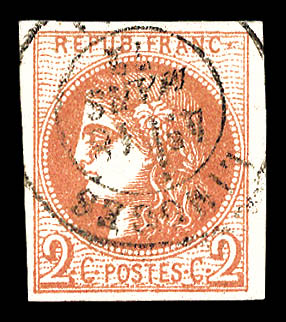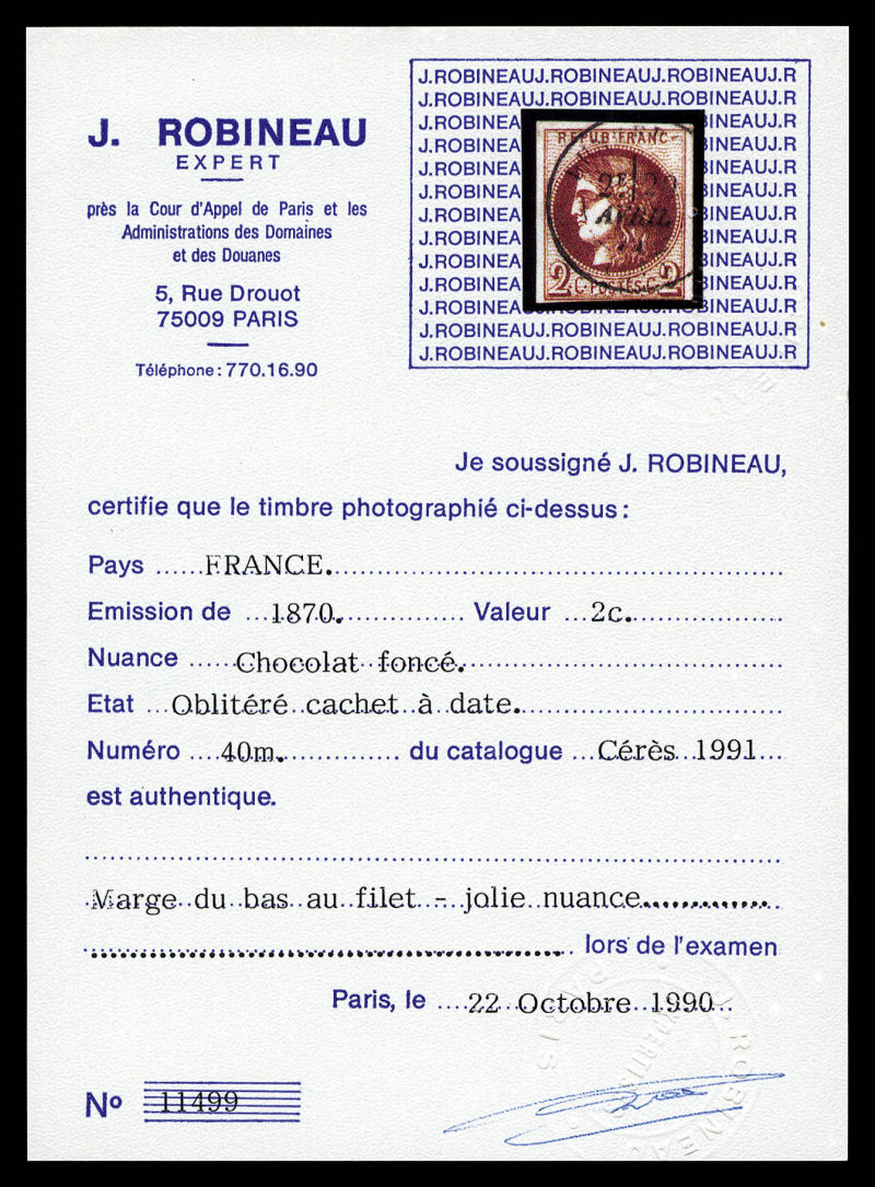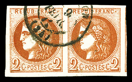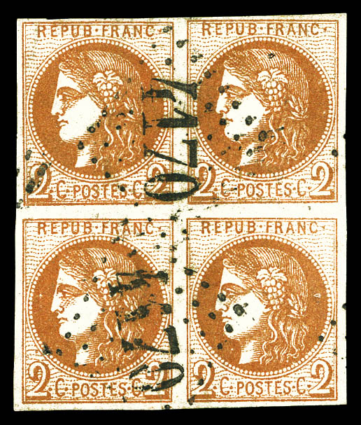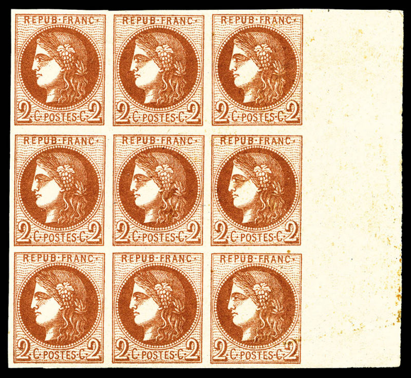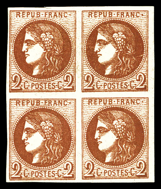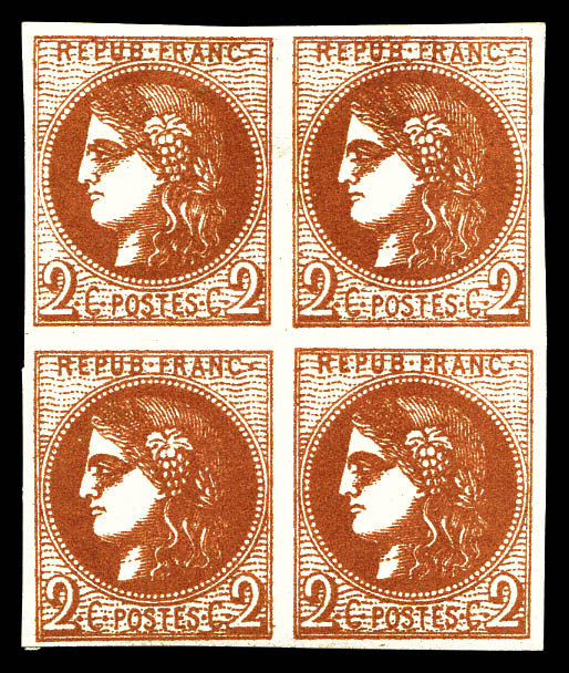 brun-rouge Report 2, bloc de dix exemplaires (déf.) obl. GC 4653 sur lettre de LODS, Doubs, le 11 mai 1871 pour Besançon, TRES RARE (signé Scheller/certificats) Qualité: Oblitéré (Image) (image2)