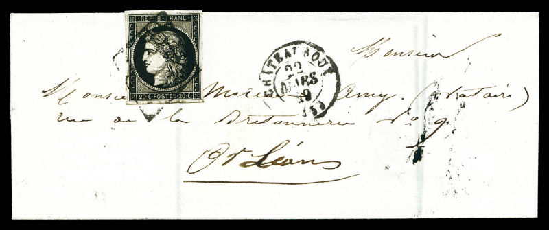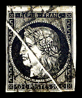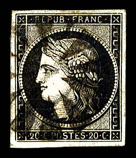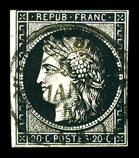 67 imageN°3, 20c noir obl grand càd T13 de Béziers 4 janvier 1849. SUP. R. (signé/certificat) Qualité: Oblitéré Cote: 1500 euros (Image)