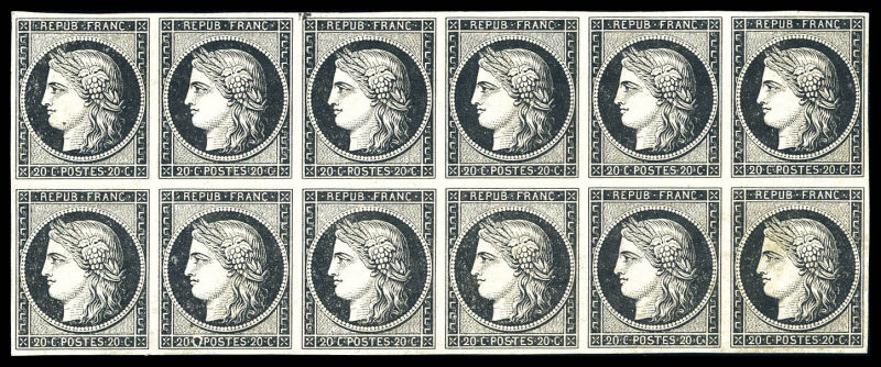 80 imageN°3a, 20c noir sur blanc en bloc de douze, des exemplaires *, très fraîs. SUPERBE. R.R. (signé Calves/certificat) Qualité: ** (Image)