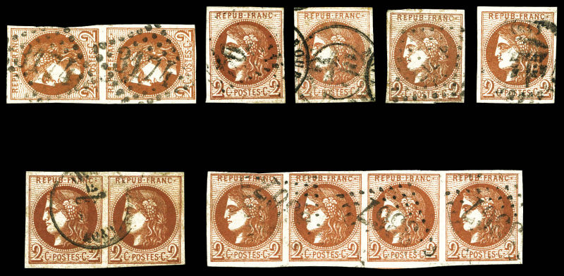 786 imageN°40, 2c brun-rouge Report 2: Ensemble comprenant 12 exemplaires dont bande de 4, 2 paires et nuances, très belle qualité générale Qualité: Oblitéré Cote: 4820 euros (Image)