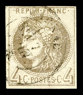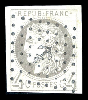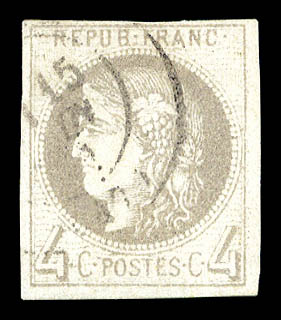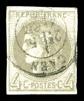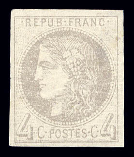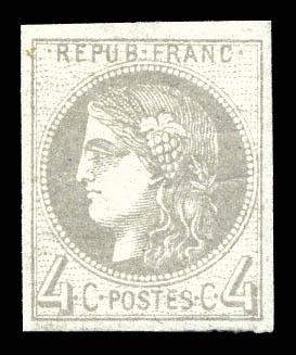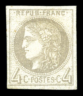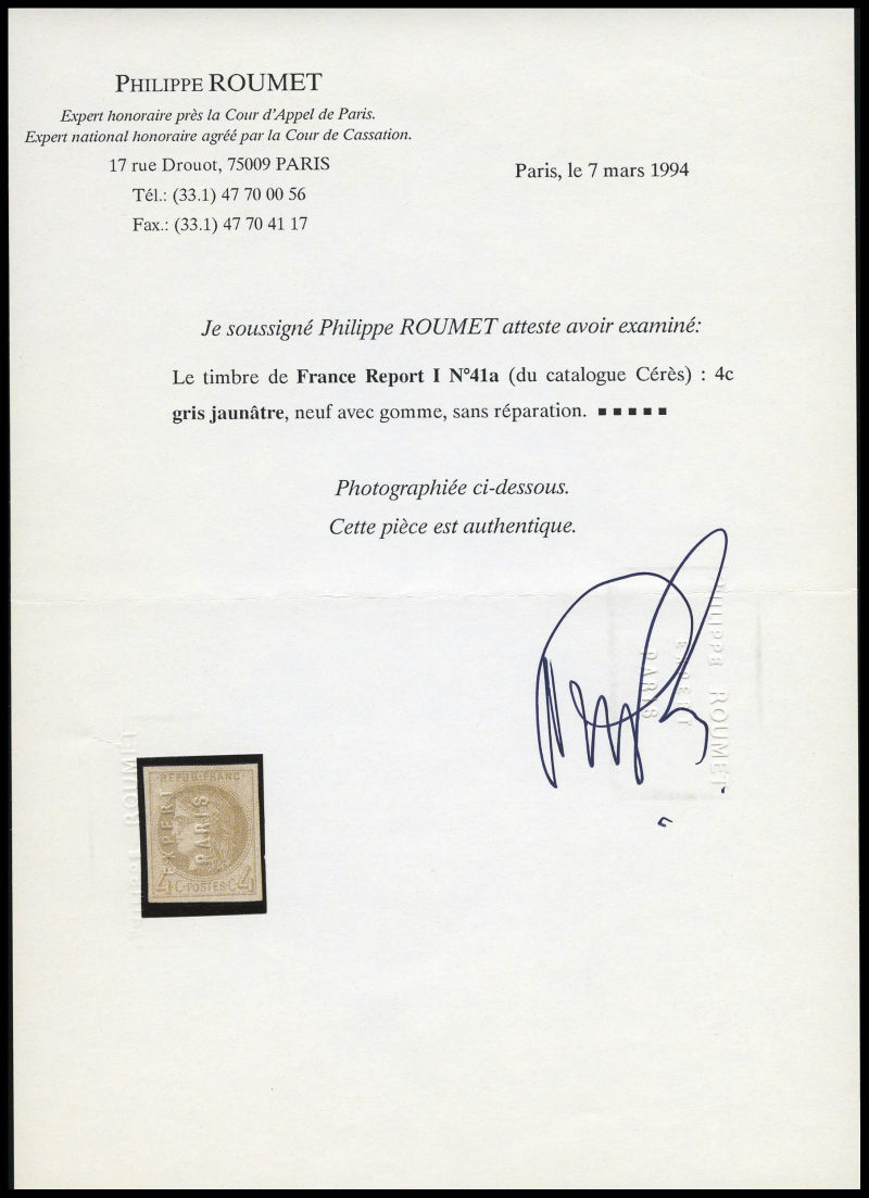 790 imageN°41A, 4c gris report I, quatre belles marges, R.R.R et TTB (signé Calves/Brun/certificats) Qualité: * Cote: 5500 euros (Image) (image2) (All Images)