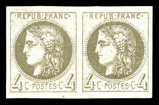789 imageN°41A, 4c gris Report 1 en paire horizontale, léger pli de gomme en partie inférieure, belles marges, très jolie pièce. R.R. (certificat) Qualité: * Cote: 13000 euros (Image)