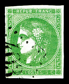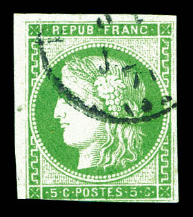 821 imageN°42A, 5c vert-jaune Report 1 obl càd, filet touché en bas, belle présentation. R.R (signé Calves/Scheller/certificat) Qualité: Oblitéré Cote: 7800 euros (Image) (image2) (All Images)