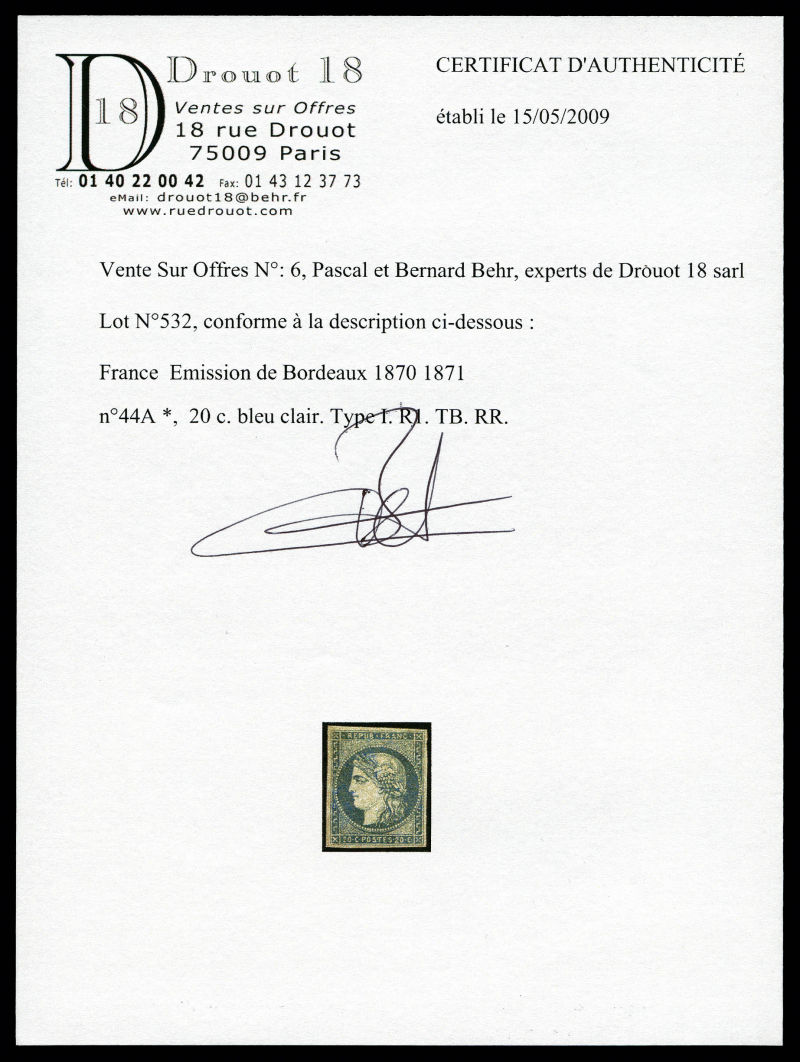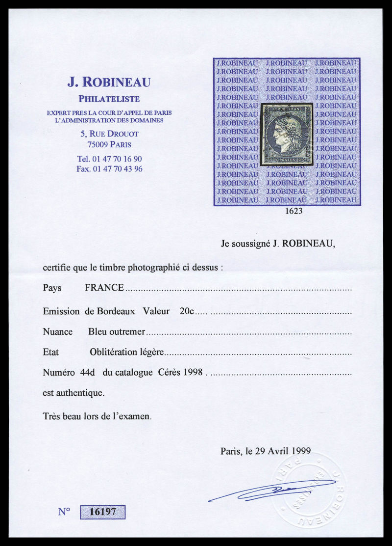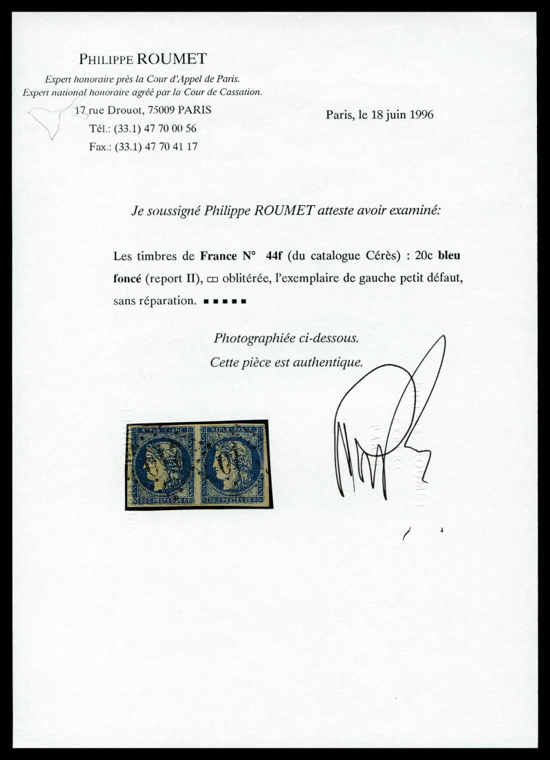 Margues/Scheller/Brun/Calves/Roumet/certificat) Qualité: Oblitéré Cote: 21000 euros (Image)