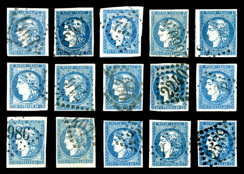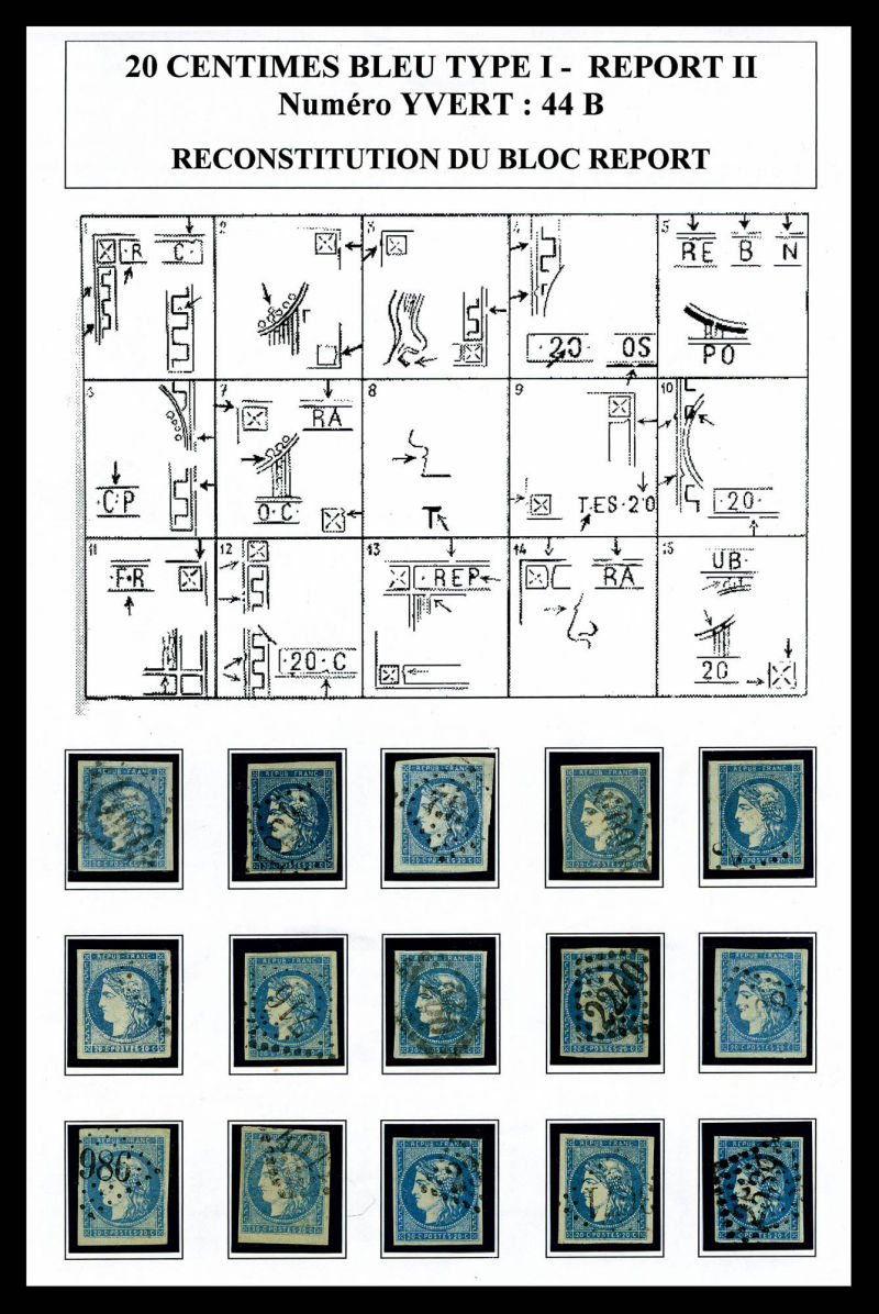 Bordeaux Type 1 Report II: Exceptionnelle reconstitution d'un bloc report complet de 15 exemplaires dont nuances, tous les exemplaires choisis sont d'une grande qualitée et signés avec belles marges, SUPERBE. R.R.R (signés