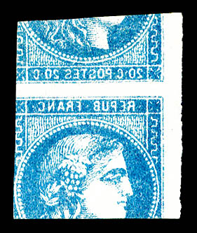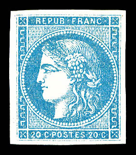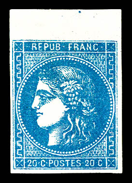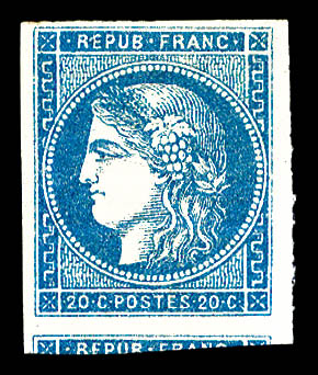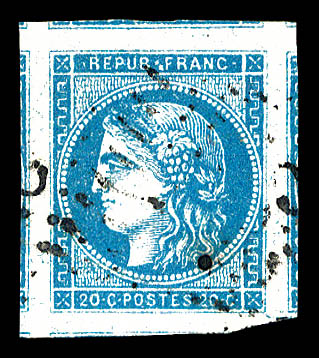 939 imageN°46A, 20c bleu Type III Report 1, bord de feuille, infime pelurage. (signé Champion/certificat) Qualité: * Cote: 2200 euros (Image) (image2) (All Images)