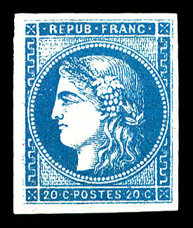ALLEMAGNE (1)   |  ANDORRE (8)   |  BELGIQUE (2)   |  COLONIES (1223)   |  COLONIES GENERALES (20)   |  FRANCE (2937)   |  GRANDE BRETAGNE (1)   |  GRANDES SERIES COLONIALES (7)   |  LOTS ET COLLECTIONS Europe (1)   |  LOTS ET COLLECTIONS Thématiques (1)   |  MONACO (57)   |  SUISSE (1)   |