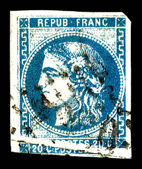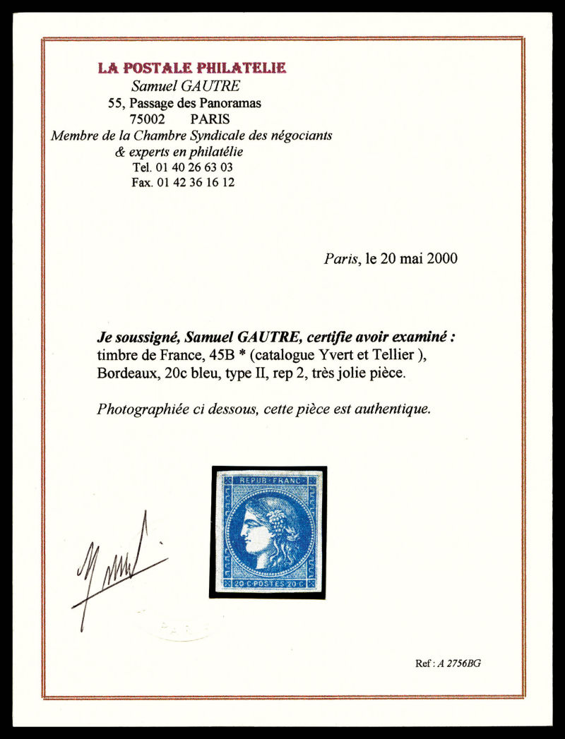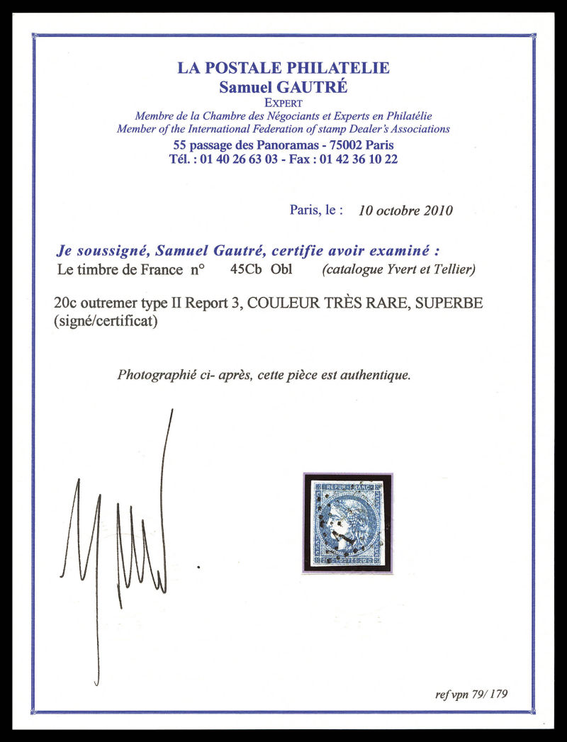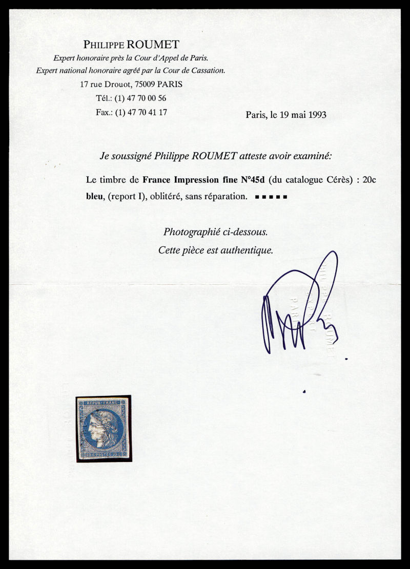 925 imageN°45Ac, 20c bleu type II Rep 1, impression fine. TTB (signé/certificats) Qualité: Oblitéré Cote: 400 euros (Image) (image2) (All Images)