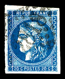 937 imageN°45Cb, 20c outremer type II Report 3, couleur rare. SUP (signé/certificat) Qualité: Oblitéré Cote: 4500 euros (Image) (image2) (All Images)