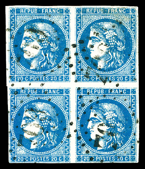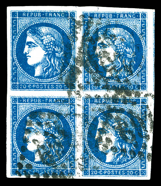 934 imageN°45C, 20c bleu type II Report 3 en bloc de quatre, belles marges. SUP. R. (signé Calves/certificat) Qualité: Oblitéré Cote: 2500 euros (Image) (image2) (All Images)