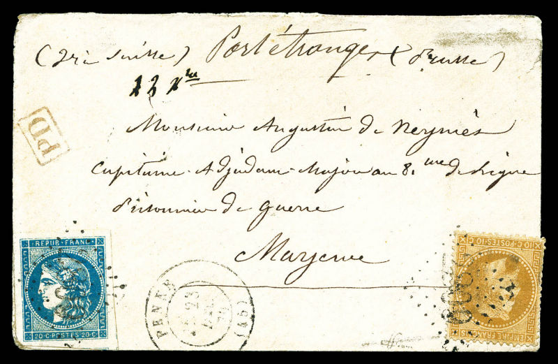 936 imageN°45C +28B (pd) obl. GC sur env. de Penne, Lot-et-Garonne, 23.12.70 pour un officier prisonnier à Mayence en Allemagne, càd d’arrivée 04.01.71, TB. (signé Brun/certificat) Qualité: Oblitéré (Image)