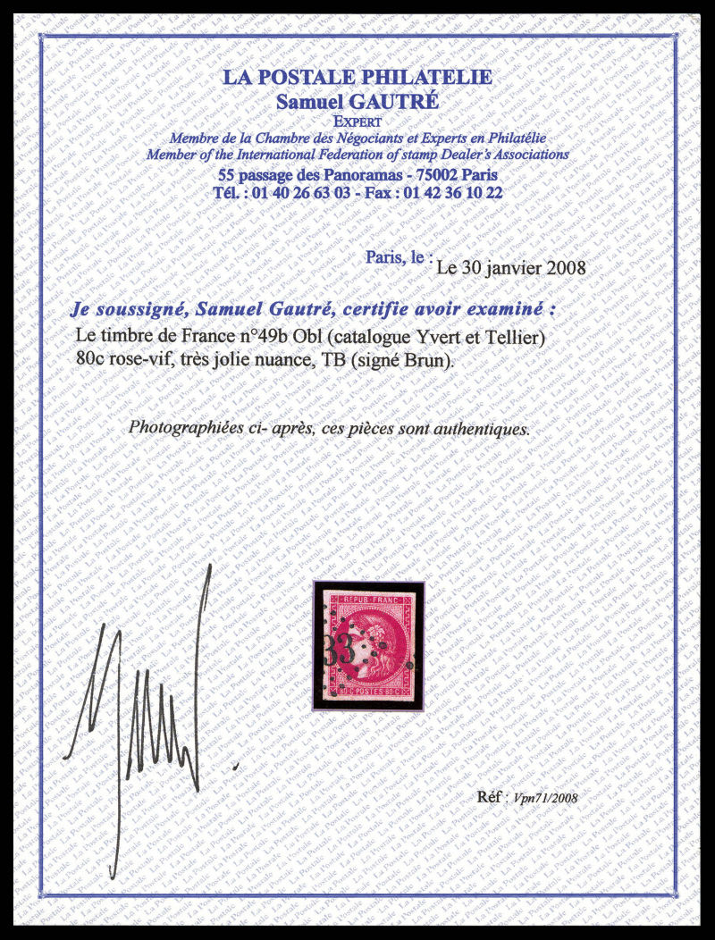 1048 imageN°49, 80c groseille foncé obl GC. TB (signé/certificat) Qualité: Oblitéré (Image) (image2) (All Images)