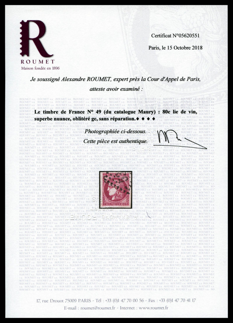 1056 imageN°49, 80c lie de vin, superbe nuance. TTB. R.R. (signé/certificats) Qualité: Oblitéré (Image) (image2) (All Images)