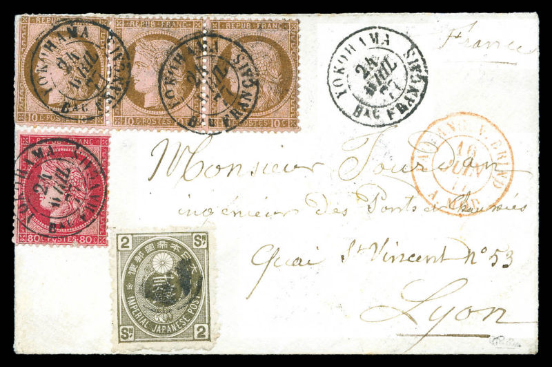 japonais Yokohama 24 avril 1877 Affranchissement mixte exceptionnel, SUPERBE. R.R.R. (signé Calves/certificats) Qualité: Oblitéré (Image) (image2)