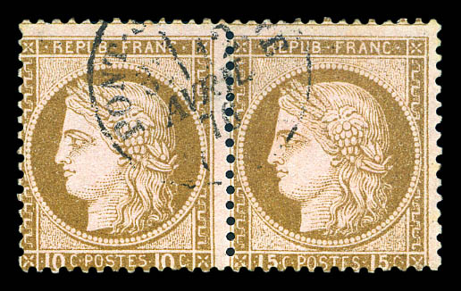 1084 imageN°55c, ERREUR DE FACIALE: 15c brun sur rose tenant à normal obl càd, RARE ET SUPERBE (signé Brun/certificat) Qualité: Oblitéré Cote: 15000 euros (Image) (image2) (All Images)